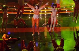 La vedette realizó un extracto de su participación en la obrateatral La revista deBuenos Aires, dirigida por Reina Reech con más de 20 bailarines en escena. El musical comienza en penumbras con bocas fluorescentes que repiten cual collagelas frases más famosas de la "lengua karateka" de Moria Casán hasta que las luces se encienden, la pantalla se abre de par en par y la diva ingresa por la pasarelacentral para moverse al son de Believe, de Cher.